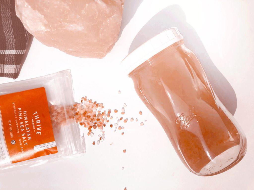 DO NOT USE TABLE SALT to make sole. If you’re still consuming table salt in general. Stop it. It’s terrible for you. It is mostly sodium chloride and almost no nutrients, plus it’s chemically produced and bleached. According to Water & Salt – the Essence of Life: “Water is taken from our cells in order to neutralize the sodium chloride in the table salt, causing the dehydrated body cells to die.”